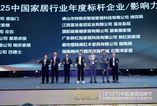《金匠奖· 2025中国家居行业年度标杆企业/年度影响力品牌》被慕思健康睡眠股份有限公司、湖南省晚安家居实业有限公司、广东巴德士新材料有限公司、佛山市特斯尼智能家居科技有限公司、江西富龙皇冠实业有限公司、濮阳丽曼俪家居有限公司、广东新红阳家居科技有限公司、廊坊檀锦阁红木家具有限公司、湖南郴州石榴湾家居商城等企业旗下品牌获得;