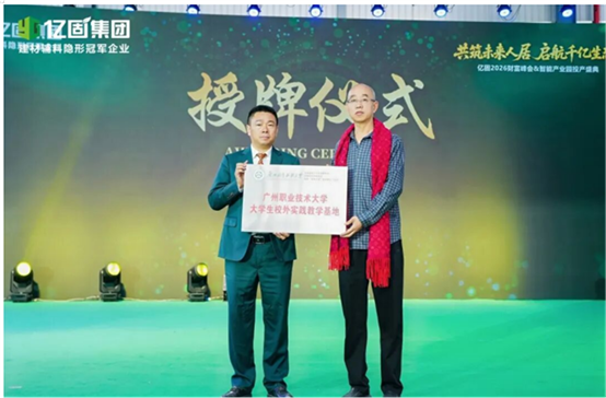 活动现场还举行了授牌仪式,亿固正式成为“广州职业技术大学大学生校外实践教学基地”,迈出产教融合、协同育人的重要一步。